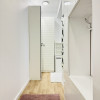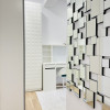 Holul de acces este bine gândit – include spații generoase de depozitare și chiar o mică zonă de birou amenajată cu gust.