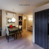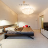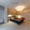 Dormitorul principal este una dintre încăperile definitorii ale apartamentului – suprafața mare și zona vitrată oferă o atmosferă caldă și foarte plăcută.