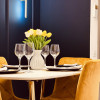 • Living deschis, cu zonă de dining și bucătărie complet utilată (mașină de spălat vase, espressor, plită, cuptor, hotă)