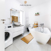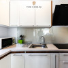 Bucătăria (6,79 mp) este dotată complet, iar dormitorul principal (13,32 mp) dispune de baie proprie.