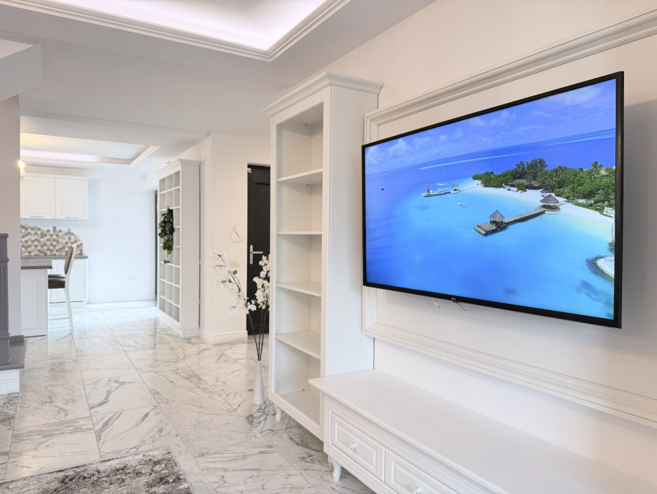* bucătărie deschisă, complet echipată (inclusiv mașină de spălat vase)