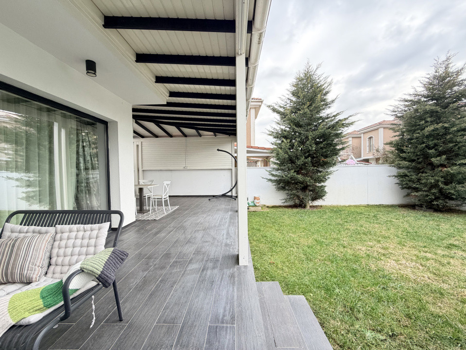 Terasa exterioară este organizată în două zone distincte, potrivite atât pentru relaxare, cât și pentru luat masa în aer liber.