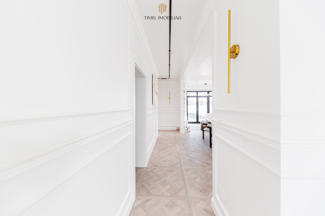 Finisajele interioare sunt realizate cu materiale de calitate (inclusiv Tempini), iar iluminatul ambiental este prezent în zonele cheie ale casei.
