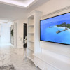 * bucătărie deschisă, cu insulă și loc de luat masa, complet echipată (inclusiv mașină de spălat vase);