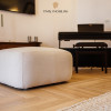 * Zona de zi este organizată într-un spațiu amplu și luminos, format din living generos cu zonă de dining, bucătărie complet echipată cu electrocasnice Miele, birou, dormitor, baie și hol de acces.