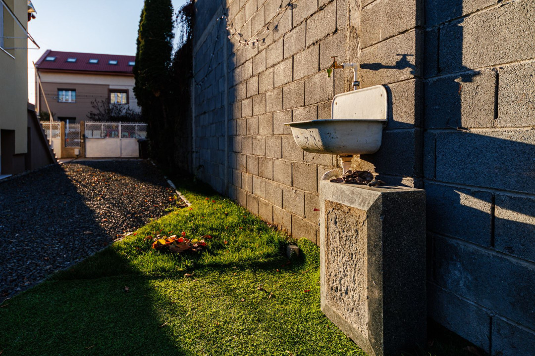 * Curte mare cu locuri de parcare dedicate și spațiu verde pentru loc de fumat.
