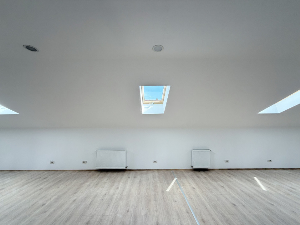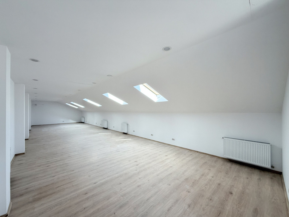 120 mp, mansardă: încăpere luminoasă open space, cu chicinetă și grup sanitar propriu - DISPONIBIL;